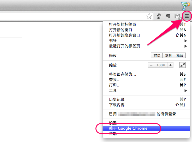 1.点击Chrome浏览器右上角的“设置”按钮,选择“关于google chrome”