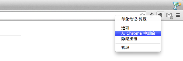 3.右单击Chrome浏览器上印象笔记·剪藏插件,选择“从chrome中删除”